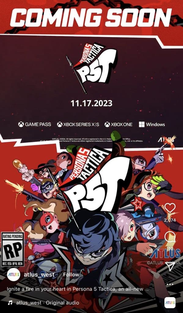 此外,P5T 宣传片流出,23 年 11 月 7 日登陆 Xbox 并首发加入 XGP。该作为战棋类游戏。