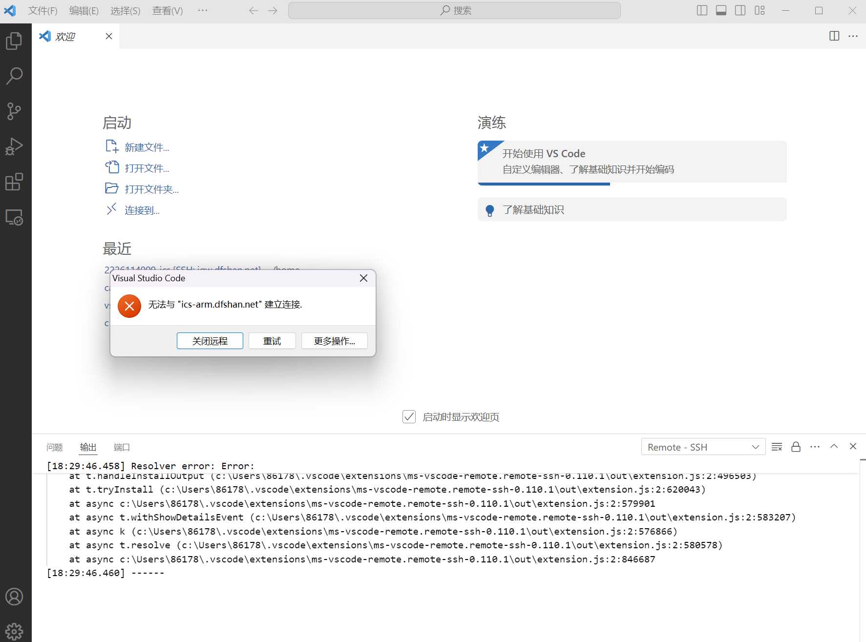 使用 remote ssh 插件没能连接上 iccserver