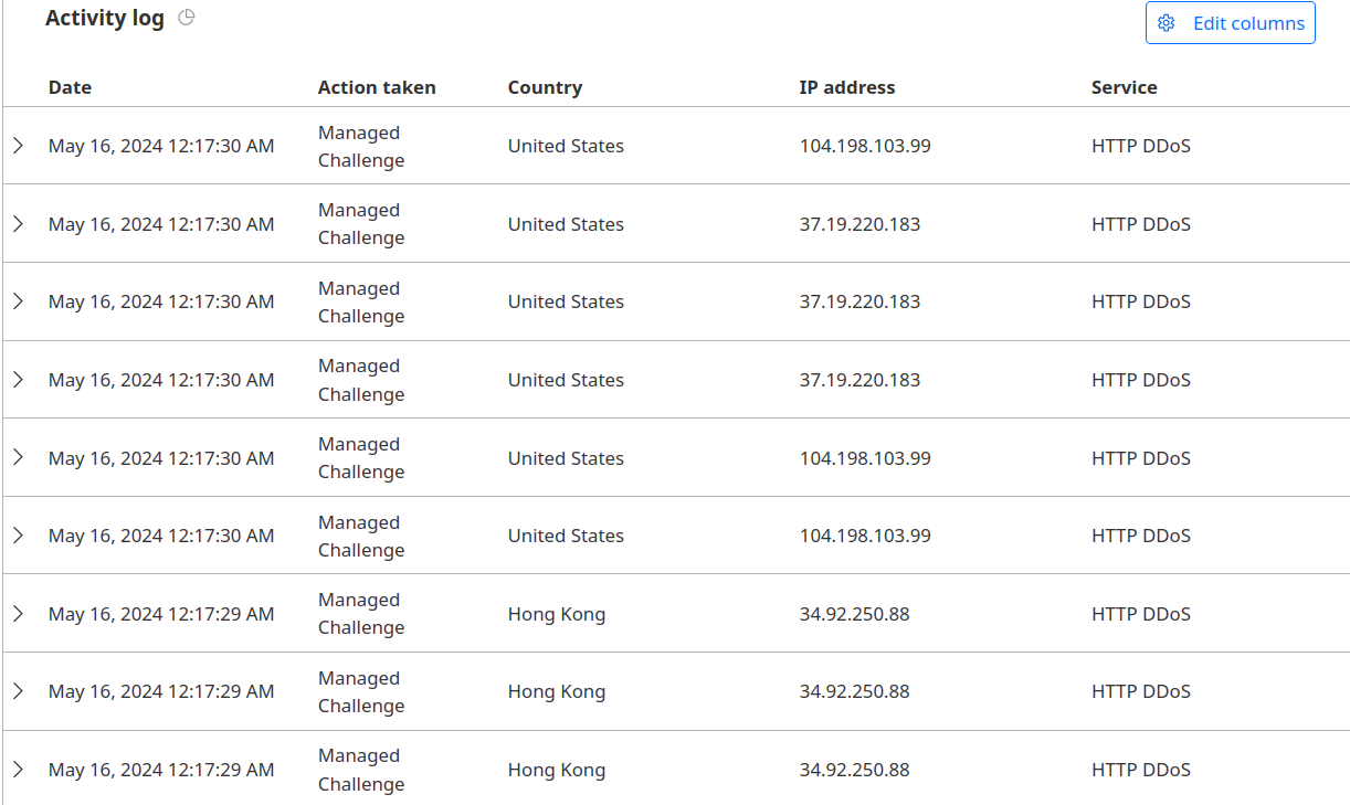 看看 CF 的日志,是哪些 IP 在攻击呢?