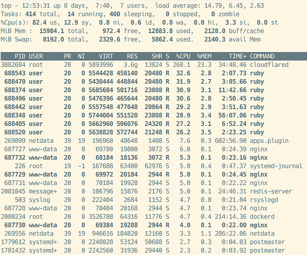 服务器,容器都没有重启,遇到 502 错误,突然高负载甚至 discourse 出现 extreme load 的横幅