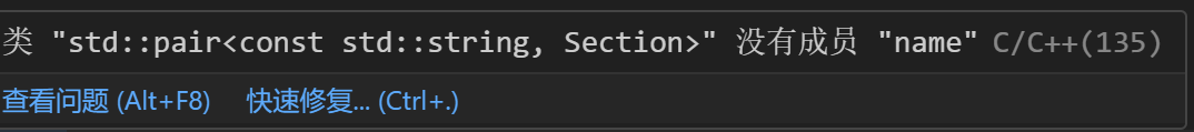 se 的类型是 pair<string, Section>,要获取 Section 字段,需要引用 se.second。此外,sections 是一个无序映射,对给定键,值的类型是 Section。例如 sections[“foo”] 是一个 Section 类型。