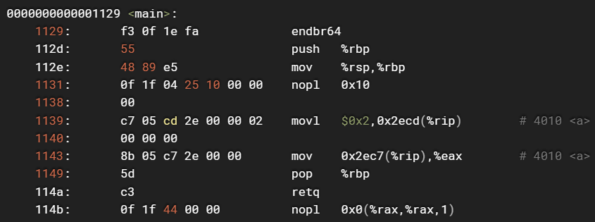 c3 之后这个函数就返回了,之后的 nop 可能是为了让下一个函数的代码对其。在这一点上不同版本的 gcc 可能有不同的行为(指导书里的输出使用 gcc 9 而大家的平台是 gcc 11)。虽然输出的二进制文件不一样,但只要把重定位做对了,最后的输出就是对的。