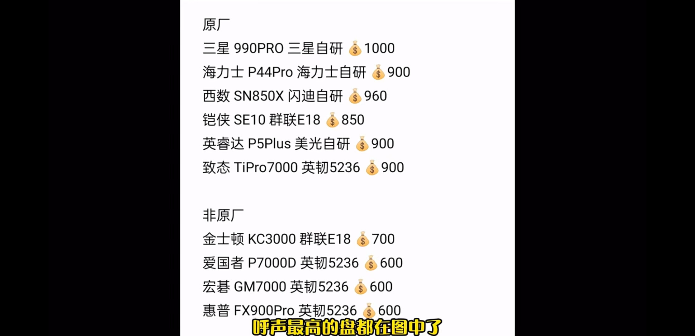 买原厂就行吧,三星炸 0E 先别买,看你笔记本 pcie 接口是 4.0 还是 3.0,不过固态现在白菜价 4.0 降速到 3.0 也比 3.0 值。海力士有 p44pro,致态几个忘了也还可以,西数 sn850,凯侠