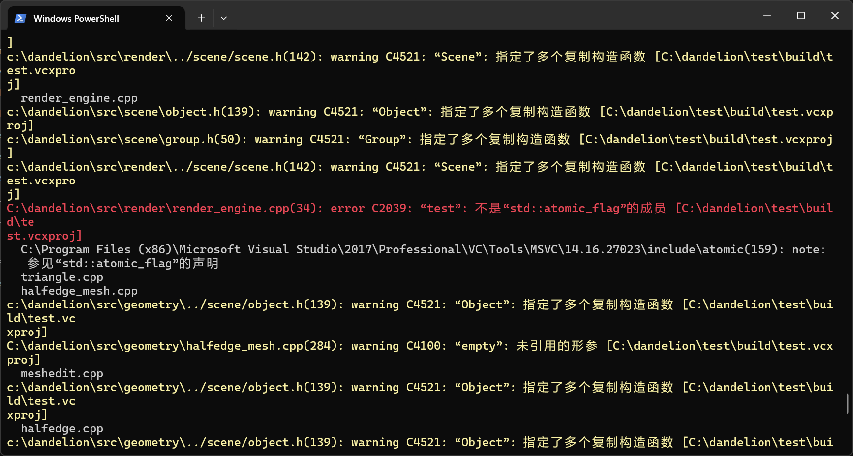 如图所示,显示“test”不是“std::atomic_flag”的成员,因为这个报错,导致我的 release 文件中的 test.exe 无法生成,进而无法使用测试程序检测 model 函数编写是否正确,不知道如何解决这个问题。