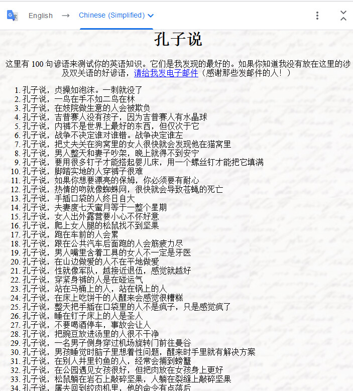 使用西方最流行的搜素引擎搜素 Confucius Says(论语)