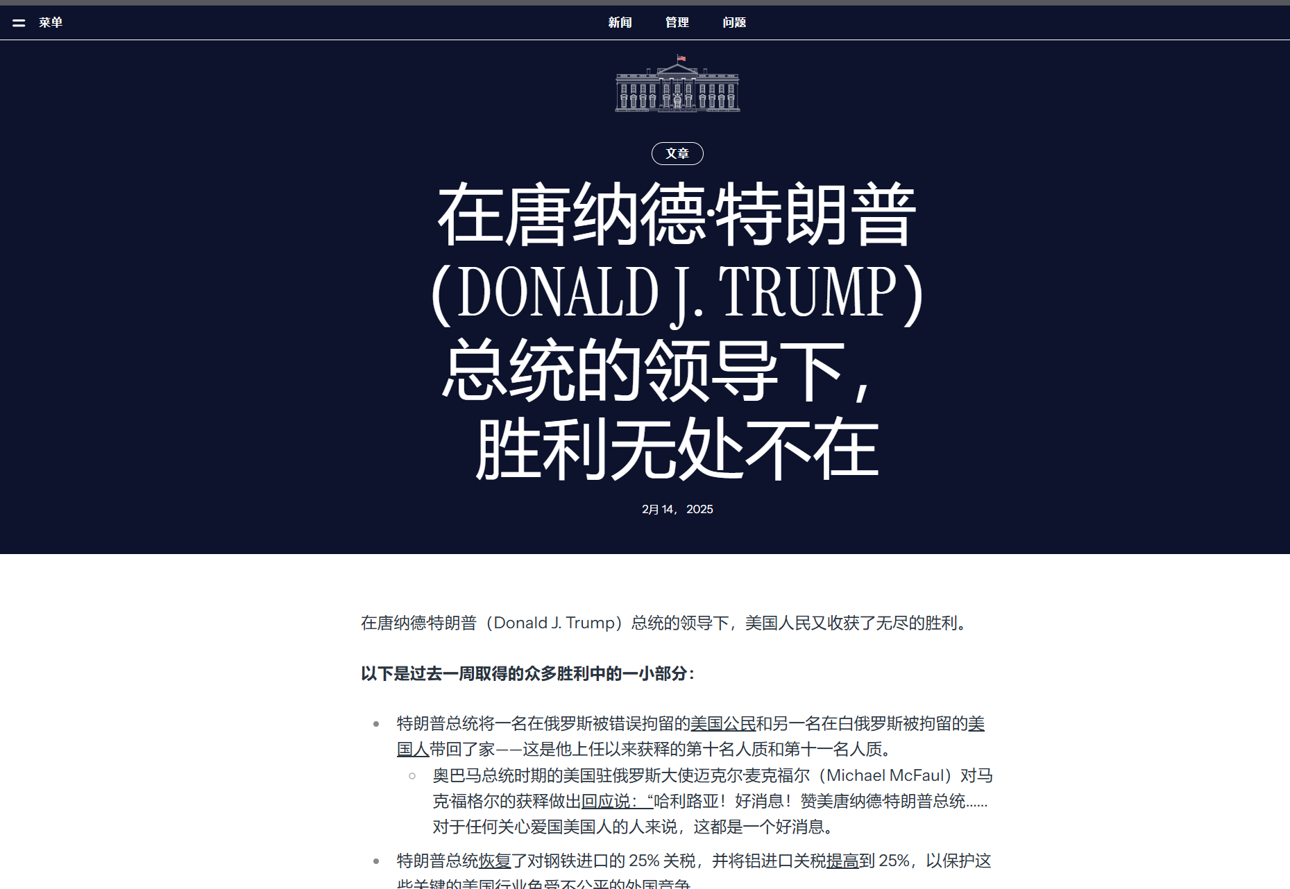 ドナルド・J・トランプ大統領の下、勝利は日々訪れる – ホワイトハウス