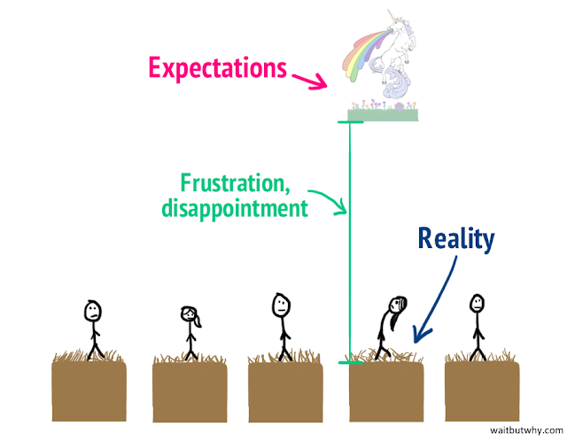 It’s simple—when a person’s life reality is better than they expected, they feel happy; when reality is worse than expected, they feel unhappy.