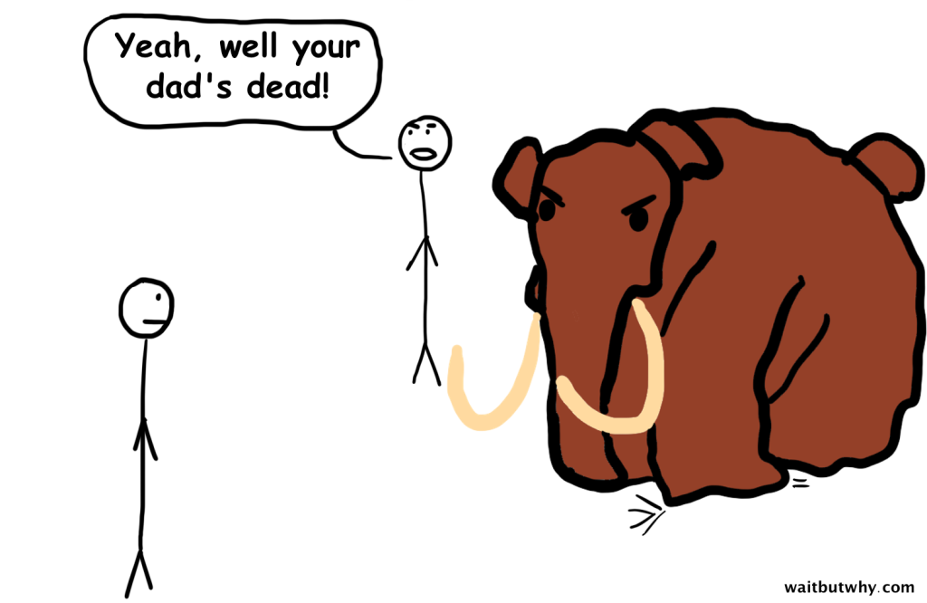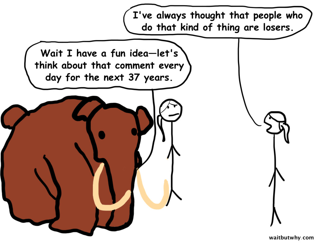 真正的猛犸象不够出色以至于灭绝了,而社会生存猛犸象也好不到哪里去。尽管它们如此困扰我们,我们的猛犸象是愚蠢、原始的生物,对现代世界毫无理解。深刻理解这一点——并将其内化——是驯服你的猛犸象的关键一步。有两个主要理由不要认真对待你的猛犸象: