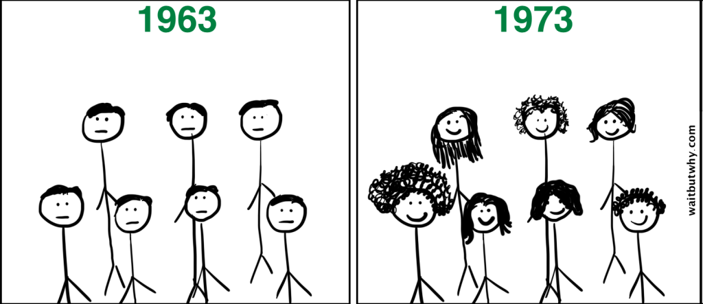 这一切在公元前 50,000 年、公元前 30,000 年和公元前 10,000 年都很正常。但在过去的 10,000 年里,人类发生了一些有趣的事情——他们的文明发生了巨大的变化。突然、快速的变化是文明有能力做到的,而这之所以尴尬是因为我们的进化生物学无法跟上这样的速度。因此,虽然在大部分历史中,我们的社会结构和生物学都在以蜗牛般的速度一起进化和调整,但最近文明发展出了兔子般的能力,而我们的生物学却继续缓慢前行。