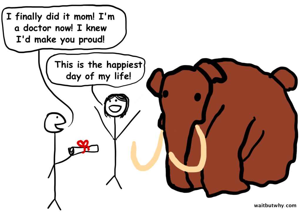 社会已经进化到适应这种猛犸象喂养狂潮,发明了诸如荣誉、头衔和声望等概念,以满足我们的猛犸象——并且常常激励人们去做一些他们本来不会考虑的无意义工作,过上令人不满的生活。
