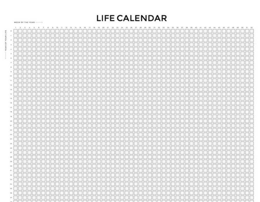 为了帮助你和我们自己保持清醒并避免“都没有”,我们创建了一个生命日历,将你生命中的每一周都列在一张纸上。我们通常不会在文章中引入产品,但在这种情况下,它们是相辅相成的。