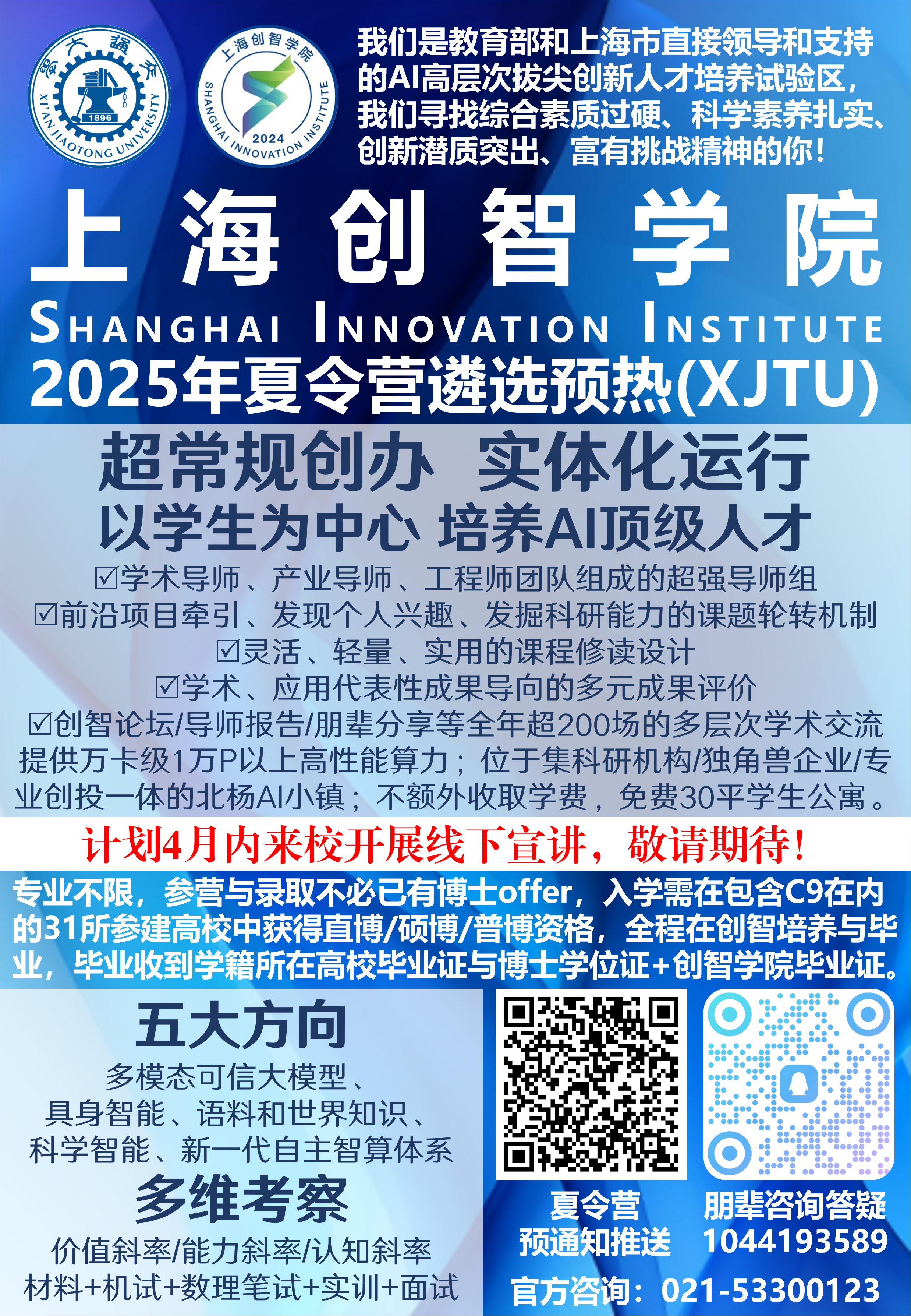 The academy has strong academic resources and excellent material conditions, mainly recruiting the 2026 cohort of doctoral students (direct PhD, master‑PhD, or general PhD are all acceptable; even those who haven’t received an offer can join, and other grade levels are also welcome), covering five major directions: scientific intelligence, embodied intelligence, multimodal, intelligent computing systems, and corpora.