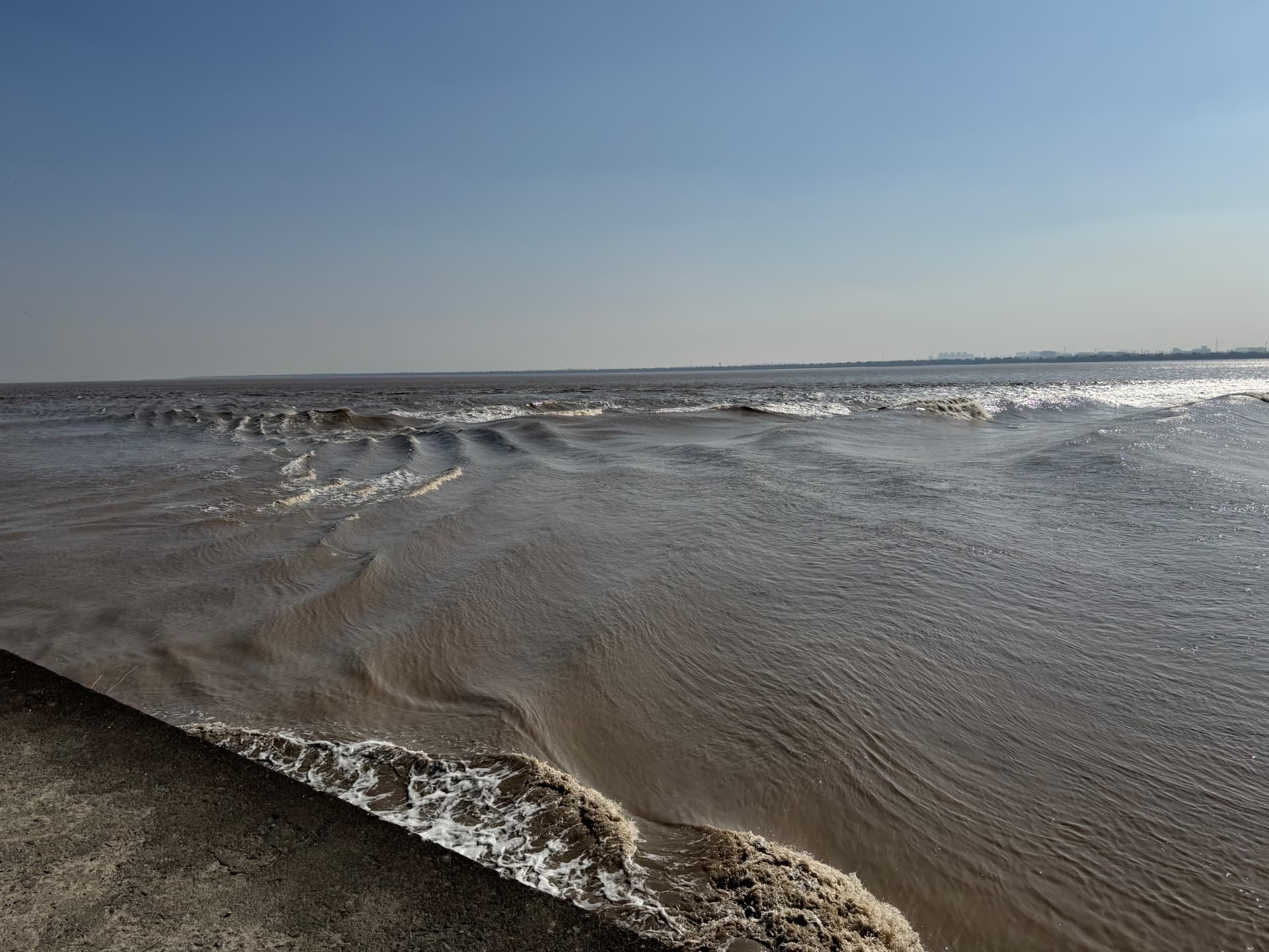 先说观潮。潮水时间可以在“钱塘江观潮”公众号查询,印象中还算准确,但为了保险起见,(我高中一直在想“为了…起见”是不是语意重复,和语文老师争了一会儿,最终结论是约定俗成,记住它是对的) 我还是比查到的时间早了十几分钟到了江边。不过那天的潮水来得比预计时间晚好多(我十一点左右赶到江边,但是十一点四十几才看到潮水)。