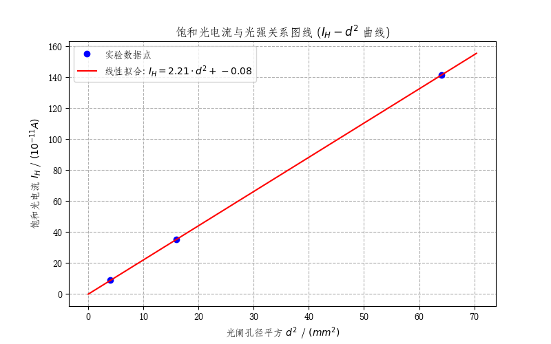 # 2. 光電特性図線 (飽和光電流 $I_H$ - 光強度 $d^2$ 図)