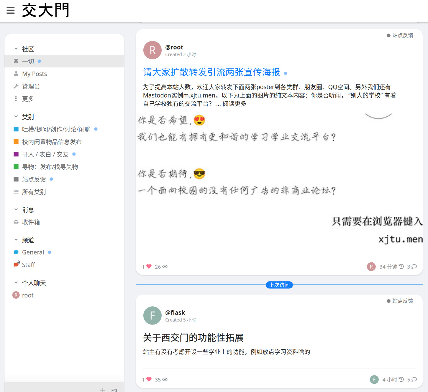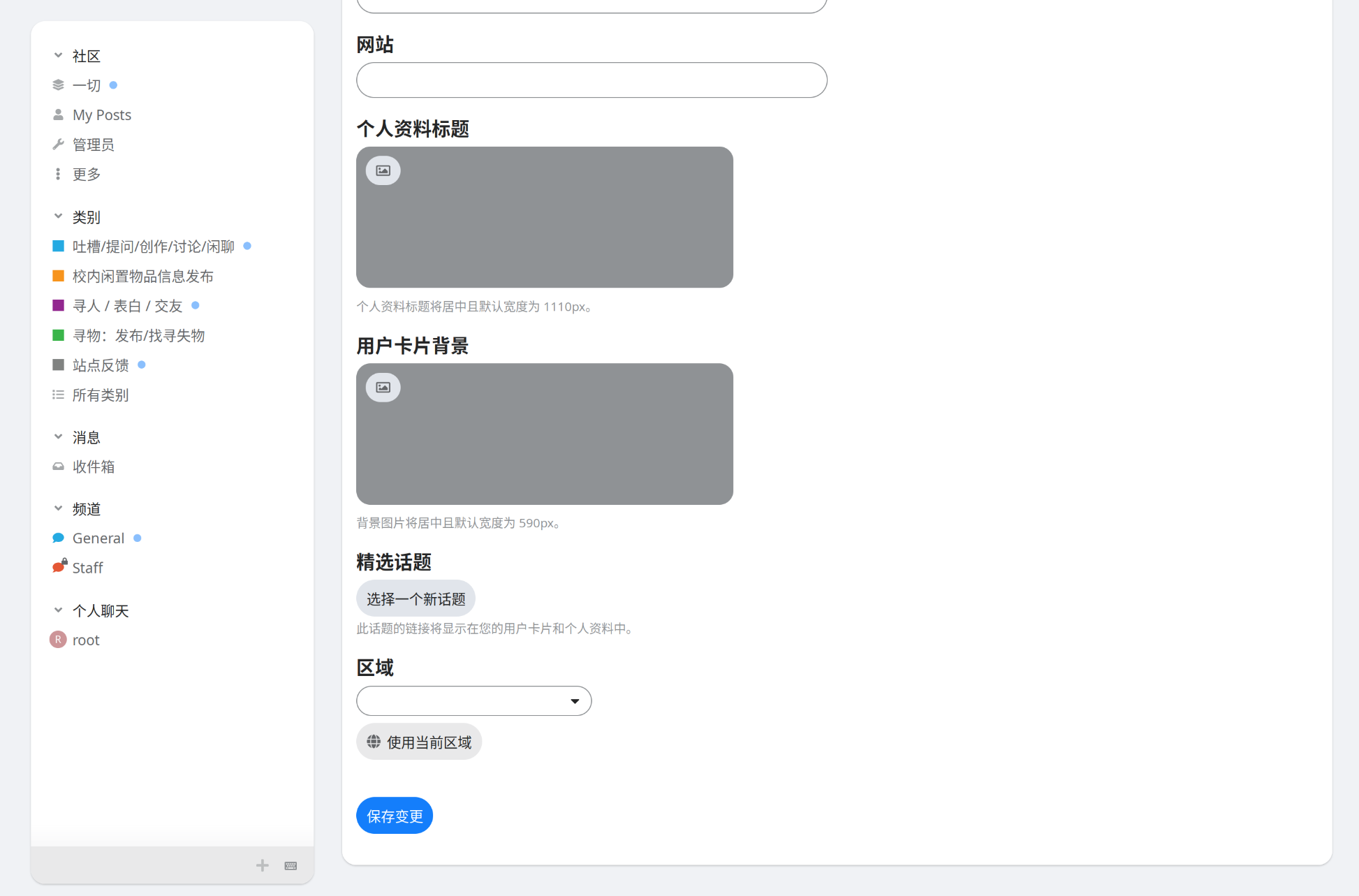 UI 美化,侧边栏分类成主页和板块两类,创建个人主页页面的内容,大陆本地化翻译,交大校园专属内容等,另外主页能预览图片吗