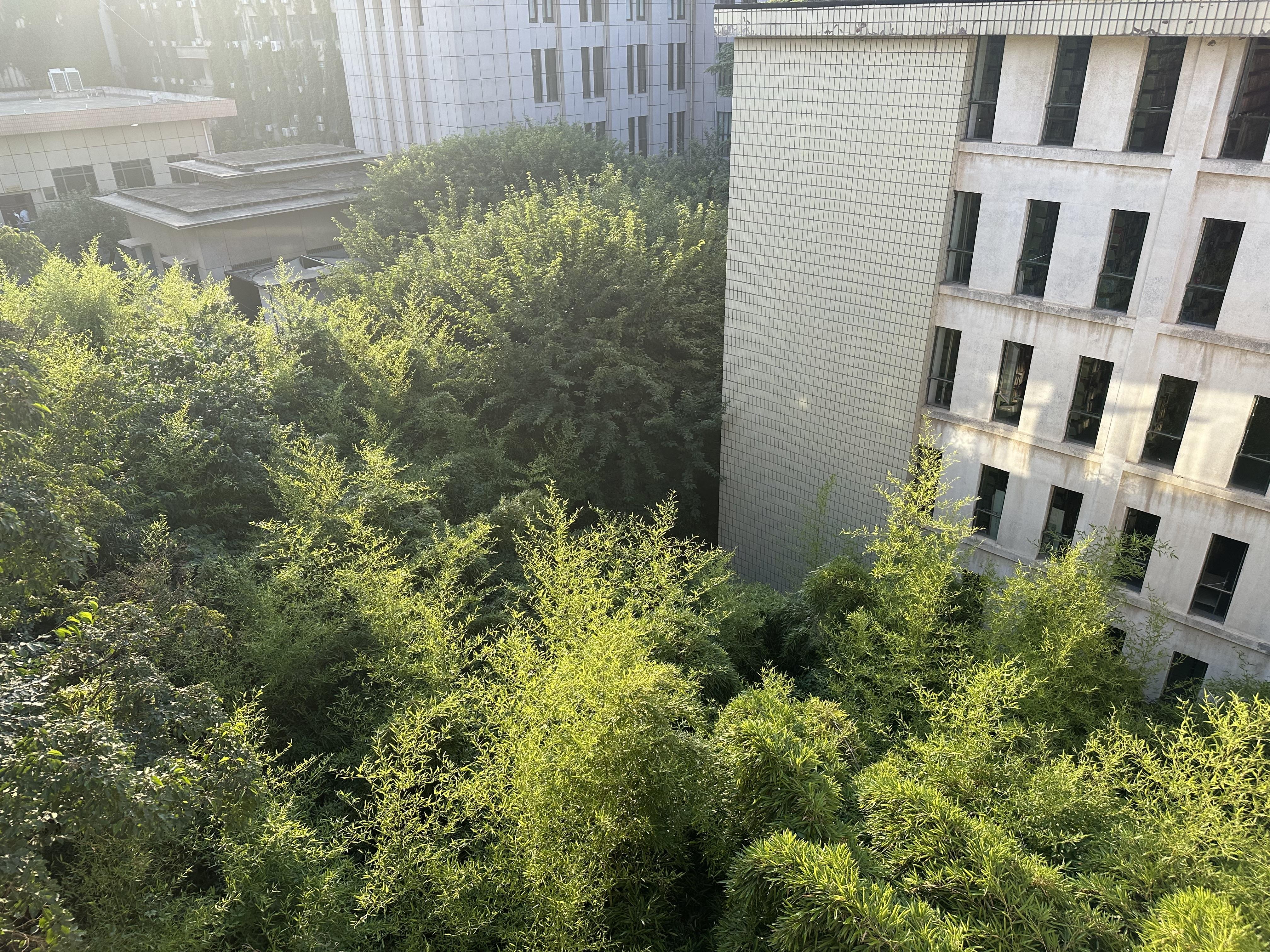 我猜是从南边四楼的窗户上去的