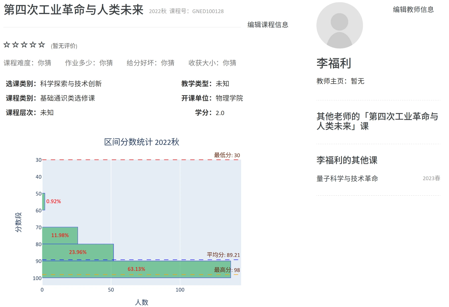 - ~200 elective courses have grade distribution, highest, lowest, and average scores information