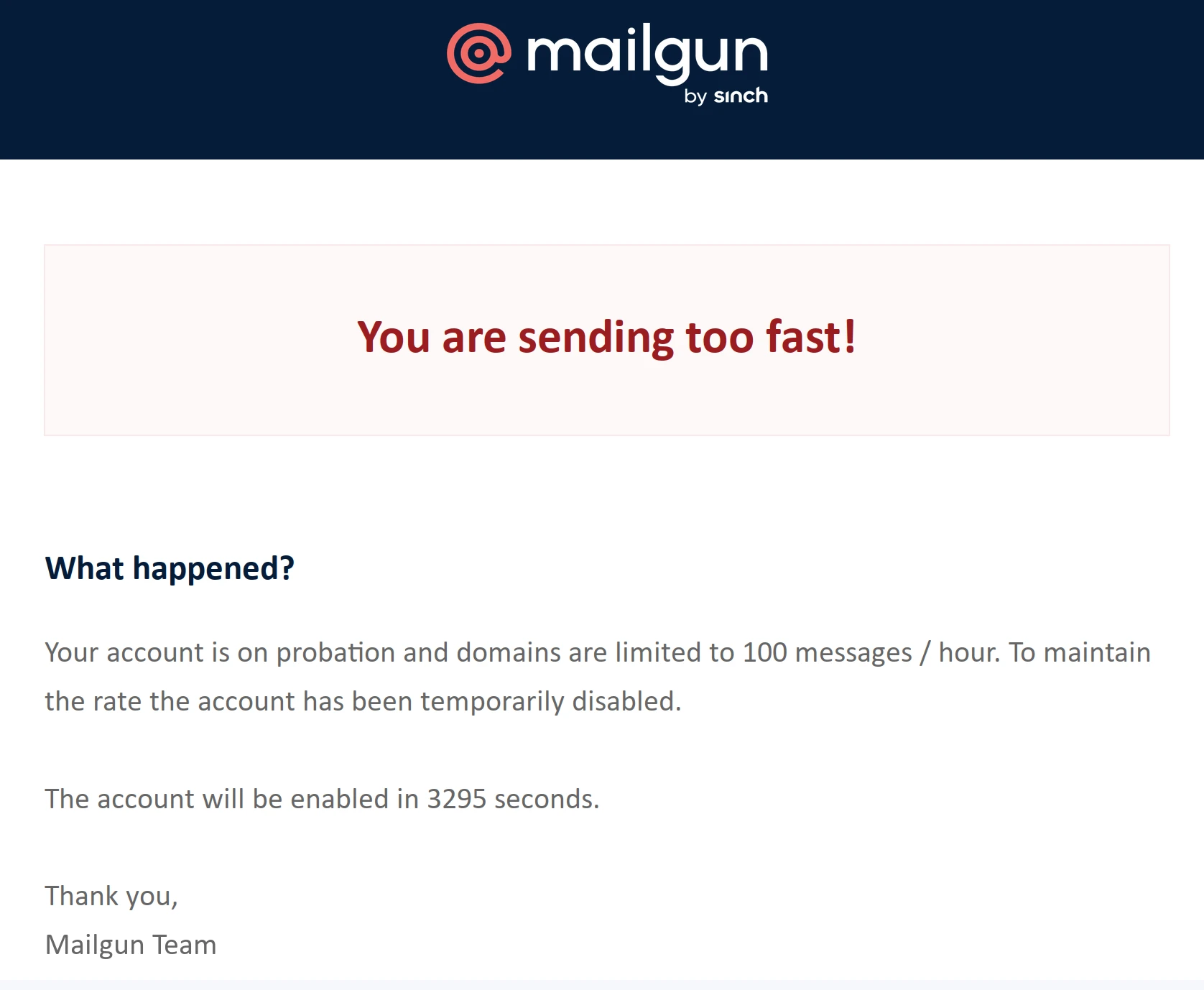 更加不幸的是发邮件功能被 mailgun 暂停了