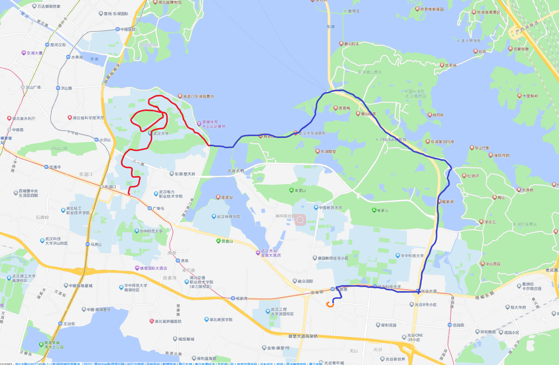 武昌站 → 武汉大学 → 东湖 → 华中科技大学 → vox Livehouse 看 chilichill 演出 → 半夜漫步长江边