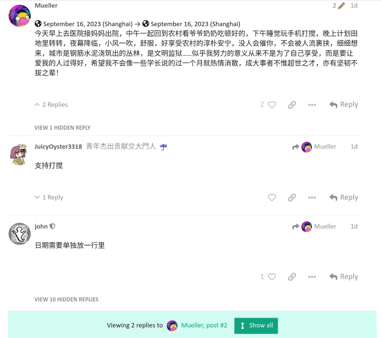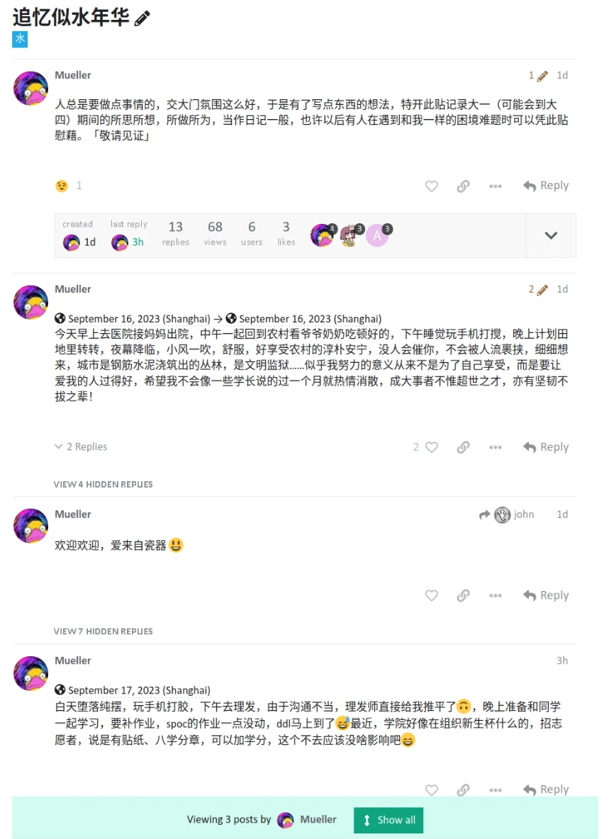 起因是有同学问我,自己开的日记话题怎样只看自己的回复,事实上可以只看任何人在此话题下的回复。