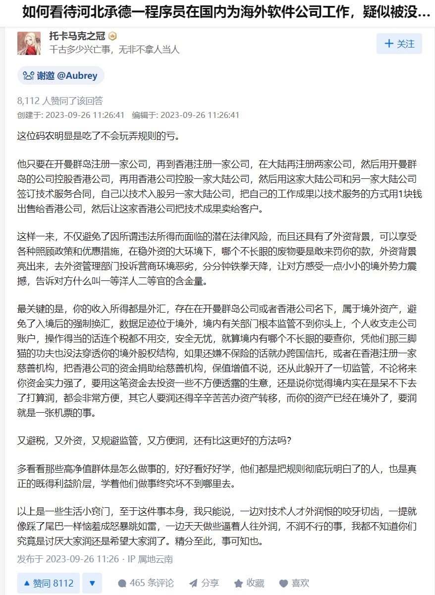 为境外公司打工就不要拿中国银行卡收钱,开个国外银行卡或者加密货币账号拿工资。。。