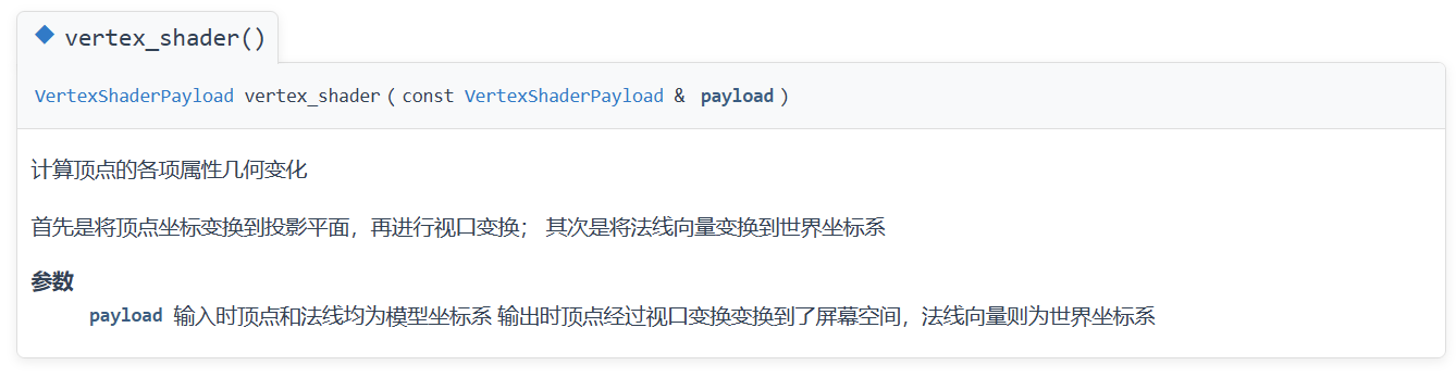 我记得 pdf 版文档中提到过,转换到世界坐标系或是相机坐标系都可以。如果是转换到世界坐标系,则还要在 vertex shader 函数外再把法线转换到相机坐标系,以供插值时使用。