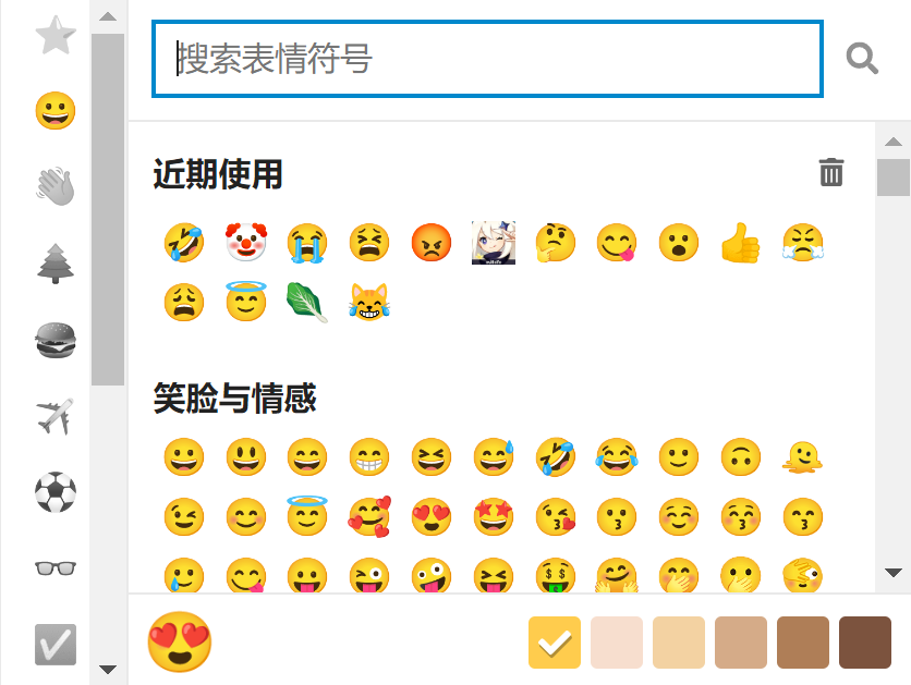 考虑到手机端屏幕的大小有限,我只设置了 18 个 reaction emoji。